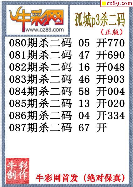 孤城杀码087期体彩P3图谜(原创)